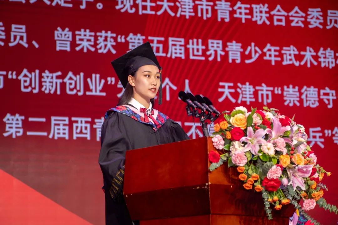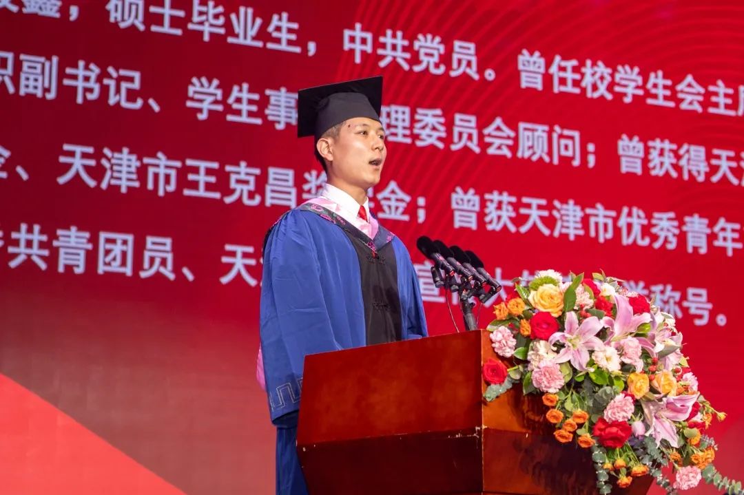 本科毕业生代表李雪娜发言,号召全体毕业生发扬米兰精神,把理想播种在广阔的时代沃土,奋力书写赓续百年伟业的青春华章。
