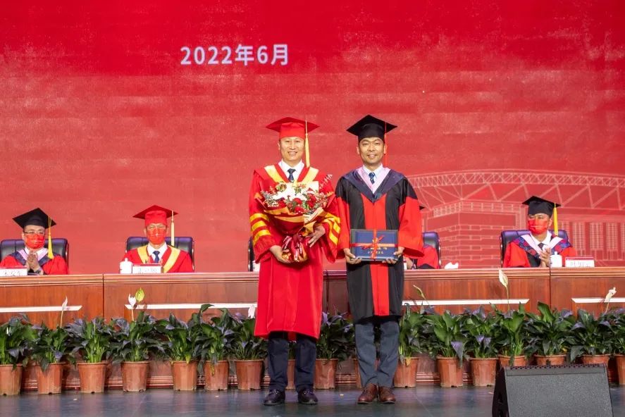 毕业典礼在升国旗仪式中拉开帷幕。宋爱军宣读米兰milan官方网站2022届优秀毕业生表彰决定。教务处处长金宗强宣读米兰milan官方网站2022届本科毕业生学位授予决定。科研与研究生处处长徐金陆宣读米兰milan官方网站2022届硕士、博士毕业生学位授予决定。主席台就坐领导向优秀毕业生代表颁发荣誉证书和纪念品,向本科、硕士毕业生代表颁发了学位证书和毕业证书。张欣为到场的3名博士毕业生代表颁发了学位证书和毕业证书。