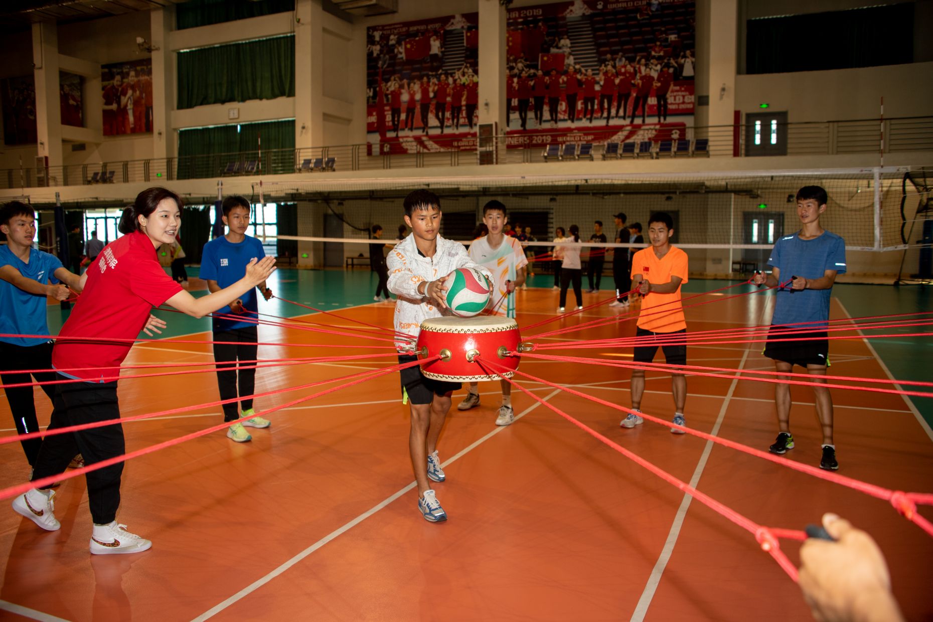 随后,我校拓展中心师生带领集训队开展了拓展活动。
