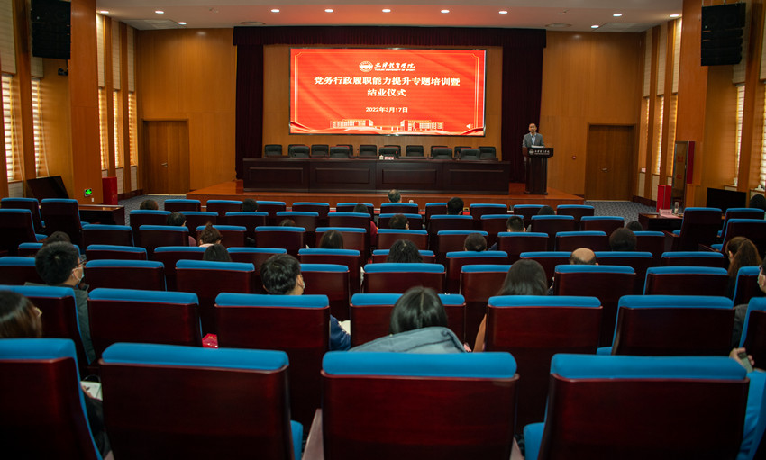 3月17日,我校党务行政履职能力提升专题培训暨结业仪式在行政楼报告厅举行。校党委副书记、院长吉承恕出席,各二级教学单位和教辅单位办公室主任、行政秘书、纪检员、组织员参会。