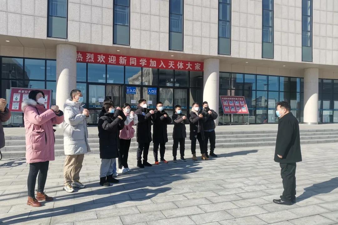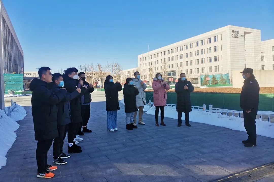 留校学生向值守校园的领导、老师和工作人员拜年并表达感谢。同学们纷纷表示,衷心感谢学校领导和老师的关心关爱与言传身教,使他们在这个难忘的冬日感到充实和温暖,未来他们会更加努力,不负学校不负青春。