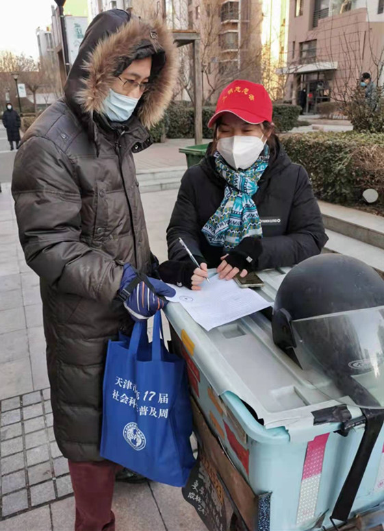 张婷,中共党员,大数据管理与应用教研室教师,在西青区李七庄街道锦城嘉苑社区核酸筛查现场维持秩序,进行信息注册、行程码查验。