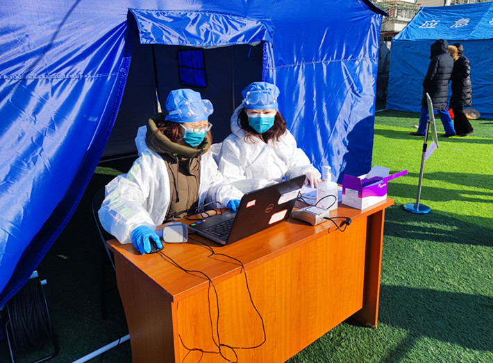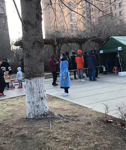 尹延兰,中共党员,党委办公室干部,参加东丽区金钟街道瑞和里社区核酸筛查志愿服务,参与完成场地布置、维护检测等候区秩序、绿色通道引导,辅助医护人员拆封采样试剂等。