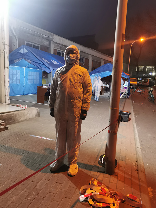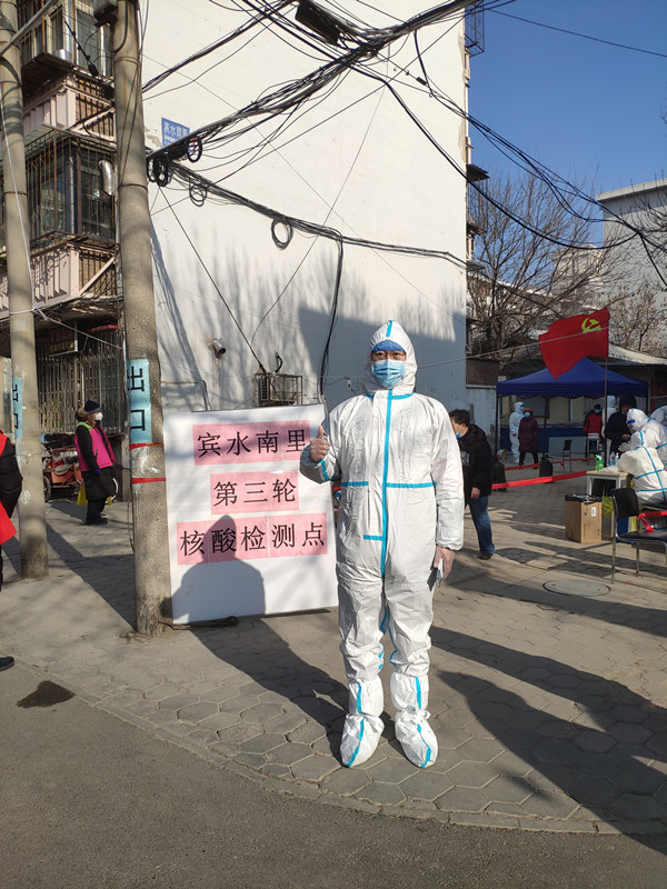 艾力,党委学工部干部,参加北辰区北仓镇绿镜华庭社区核酸筛查志愿服务,参与完成现场秩序维护、拍照拍摄。