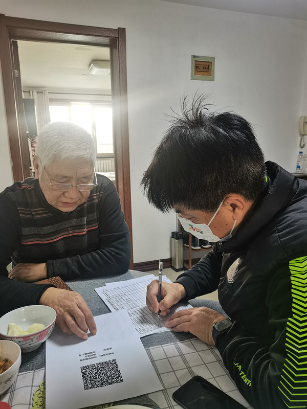 张小刚,运动训练方法与康复教研室教师,在南开区华苑街道碧华里开展居民信息统计、核酸筛查现场疏导、发放核酸检测用具等工作。