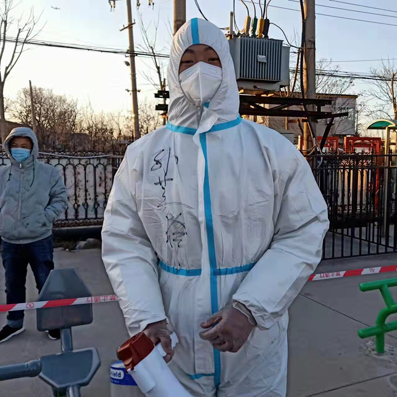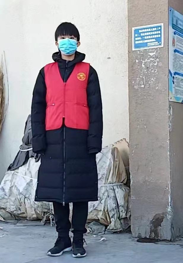 郝霖,2019级乒乓球专项学生,在西青区大寺镇谊龙花园负责核酸检测现场秩序维护。