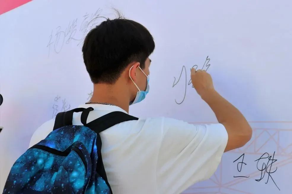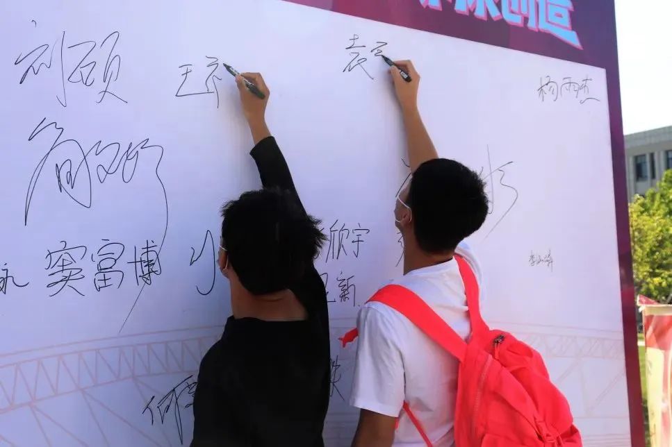 迎新现场秩序井然,展板、道旗、电子屏、指示牌、签字板一应俱全。新生们纷纷在签字板上写下对自己大学生活的祝福与期许,在展板前拍照定格自己初入米兰的难忘时刻。