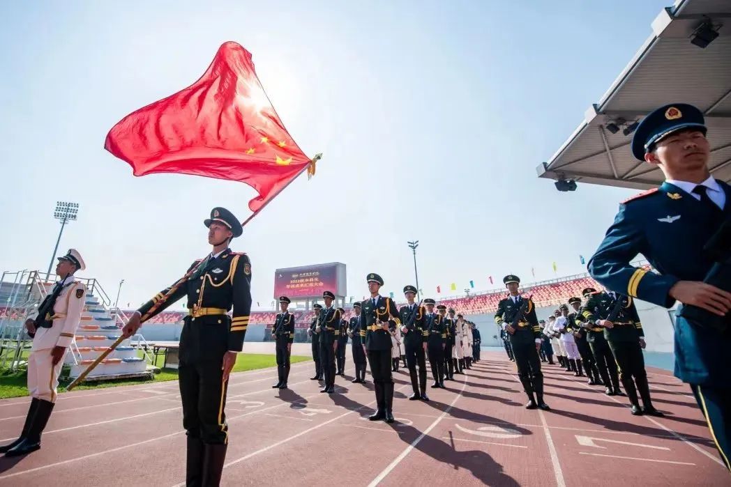 9月28日上午,米兰milan官方网站2022级本科生军训成果汇报大会在田径场举行。天津警备区学生军训工作办公室主任辛维刚大校,米兰milan官方网站党委书记、军训工作领导小组组长张立顺,米兰milan官方网站党委副书记、院长、军训工作领导小组组长张欣,米兰milan官方网站党委副书记、军训工作领导小组副组长宋爱军,米兰milan官方网站副院长、军训工作领导小组副组长张卫国,天津市教委体美劳处齐双一,天津市公安局静海分局华康派出所副所长王莹,米兰milan官方网站优秀校友、天津市消防救援总队静海支队朱枫出席,学校办公室、党委组织部、党委宣传部、党委统战部、党委安全工作部、教务处、后勤处、人民武装部、团委主要负责同志,各二级教学单位党政领导,全体新生、辅导员、墨盾书院承训教官、军训工作人员参加。大会由宋爱军主持。