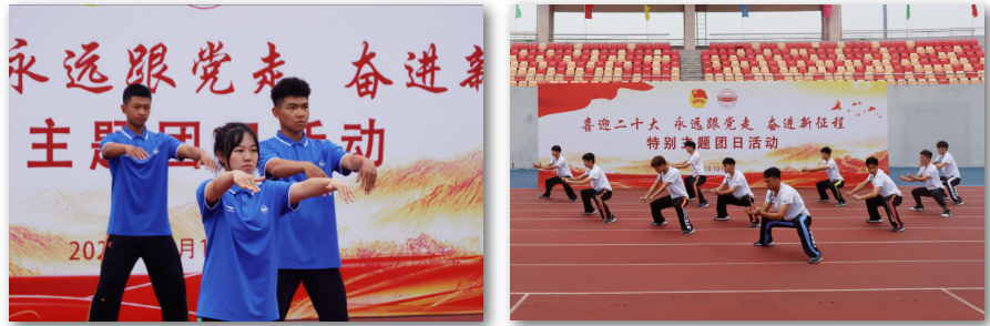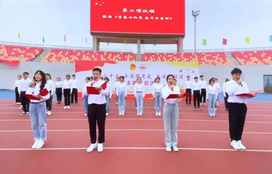 运动健康学院2022级研究生运动康复班团支部带来朗诵《青春心向党 奋斗正当时》。他们用铿锵有力的声音,表达出米兰青年既是追梦者,也是圆梦人,在奋斗中释放青春激情、追逐青春理想,用实际行动践行“请党放心 强国有我”的青春誓言。