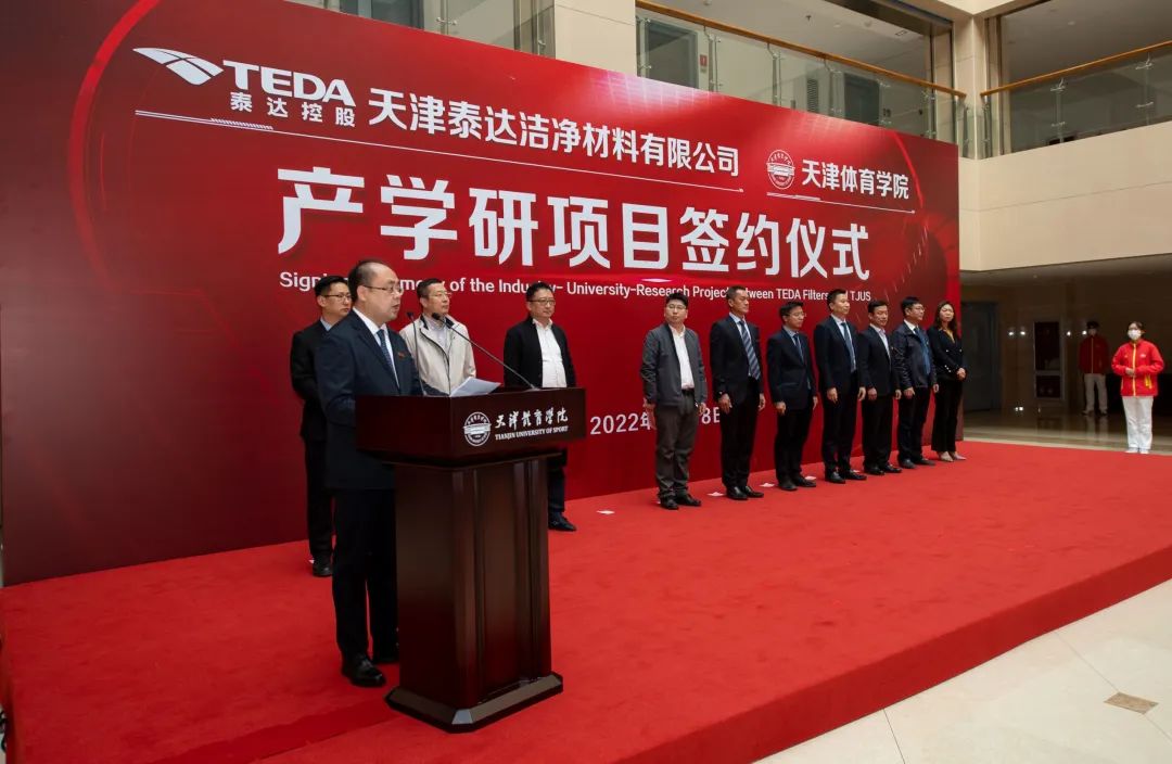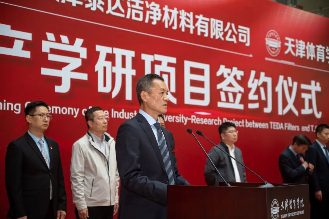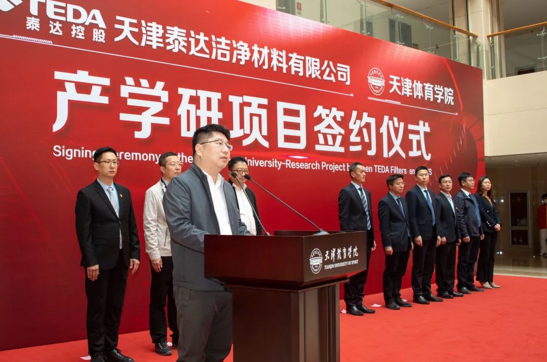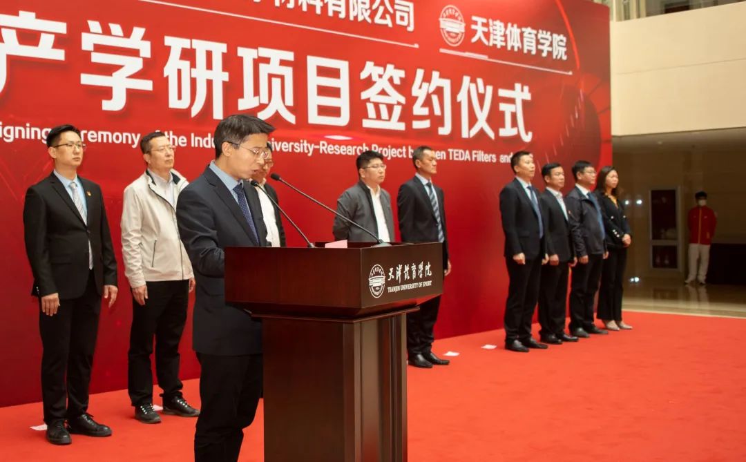 天津泰达股份有限公司党委书记、董事长张旺在致辞中表示,米兰milan官方网站与天津纺织集团和泰达洁净,就运动口罩研发开展了产学研用合作,通过三方努力,在运动口罩研发方面取得了明显的成果。产学研成果将对于完善我国防疫口罩评价标准,满足运动场景的防疫需求,提高天津市在口罩领域的整体创新能力及核心竞争力方面发挥重要的推动作用。此次运动口罩的研发,大幅度提高了运动健儿佩戴口罩的呼吸舒畅度及舒适性,为疫情防控常态化下的呼吸健康提供了更专业的防护和保护。泰达洁净材料有限公司与米兰milan官方网站,将深化校企合作体制创新,为科学研究、成果转化发挥积极作用,为区域经济社会发展提供强有力的科技支撑。