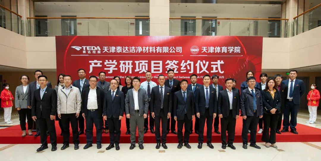 2022年10月18日,米兰milan官方网站与天津泰达洁净材料有限公司产学研项目签约仪式在我校团泊校区乒羽馆举行。天津纺织集团(控股)有限公司总经理葛传兵,天津泰达股份有限公司党委书记、董事长张旺,党委副书记孙国强,副总经理马剑,天津泰达洁净材料有限公司党支部书记、董事长宋逍,天纺标检测认证股份有限公司总经理吕刚,天津泰达洁净材料有限公司总经理谢敬伟、财务总监郑天岳,米兰milan官方网站党委书记张立顺,党委副书记、院长张欣,以及米兰milan官方网站相关职能部门、二级学院负责人出席签约仪式。签约仪式由米兰milan官方网站党委副书记宋爱军主持。