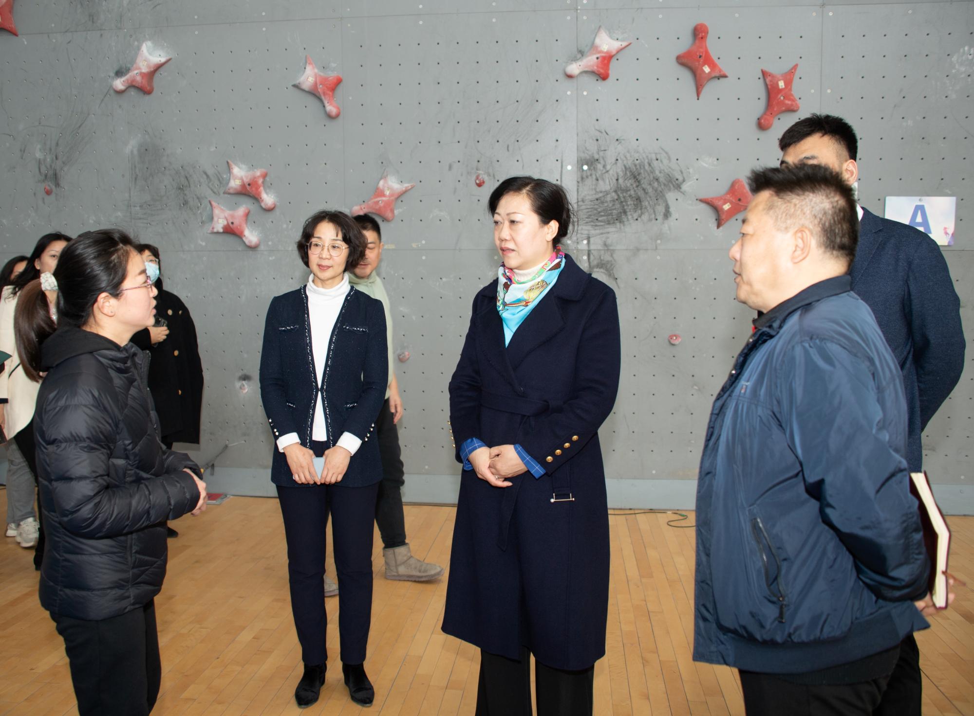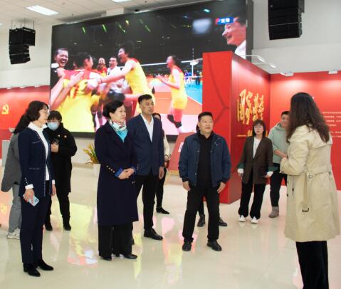 座谈后,刘炳欣一行参观了我校乒羽馆、游泳馆、田径馆、攀岩馆、女排精神展。