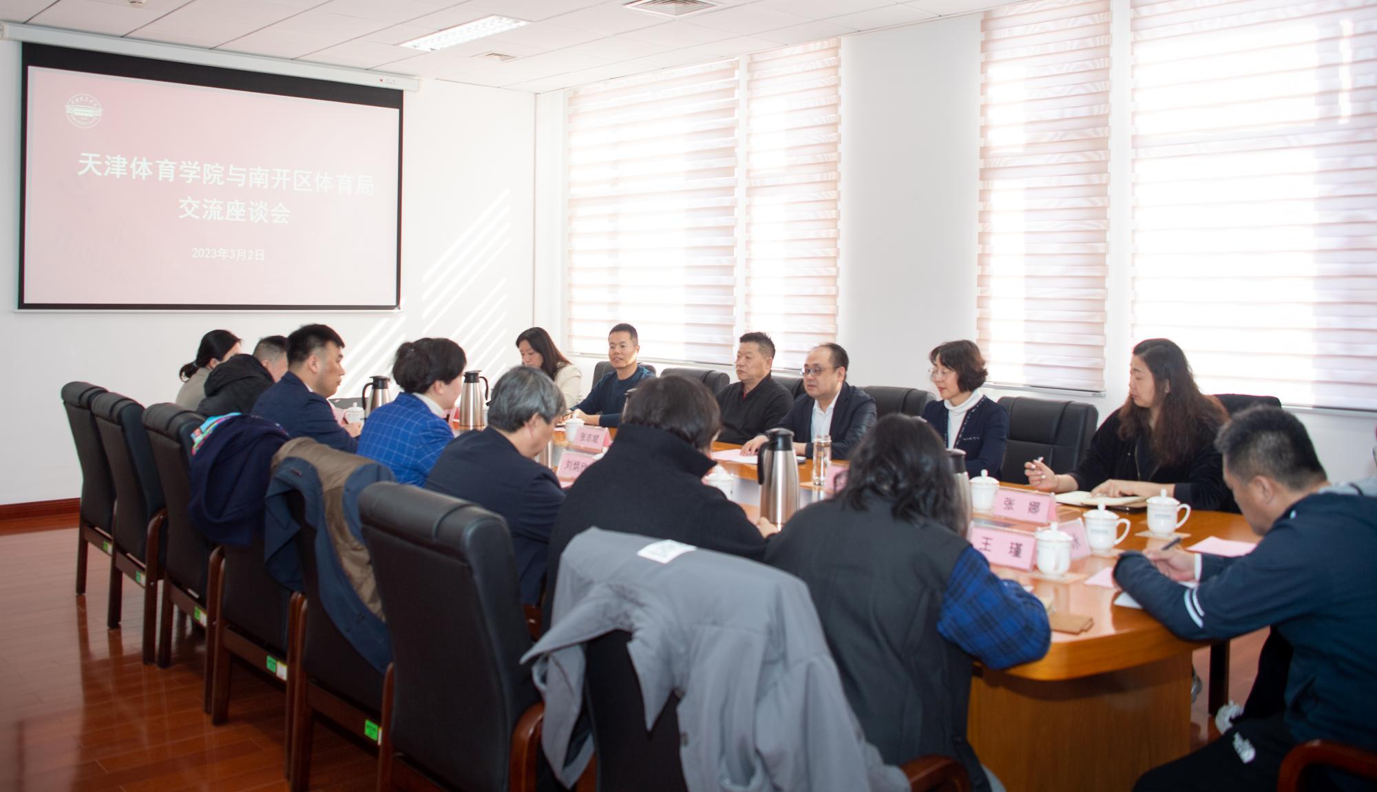3月2日下午,南开区体育局党组书记、局长刘炳欣一行9人来我校开展调研、座谈。我校党委副书记宋爱军出席座谈会。党委统战部、教务处、运动训练学院、中国排球学院相关负责同志参加。