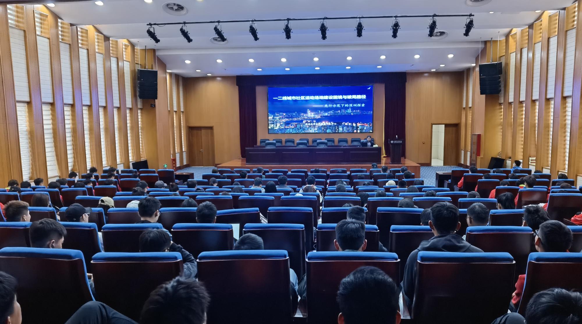 席翼从学术理论研究和服务社会实践的层面,以深圳市南山区案例为切入点,向师生详解如何通过理念突破和解决途径突破,破解一线城市体育场地面积缺口问题。讲座后,席翼还与现场师生交流互动,详细解答了大家的疑问。现场师生纷纷表示,此次讲座开拓了对全民健身场地设施建设路径探索的视野,对今后的学术研究提供了有力的指导。