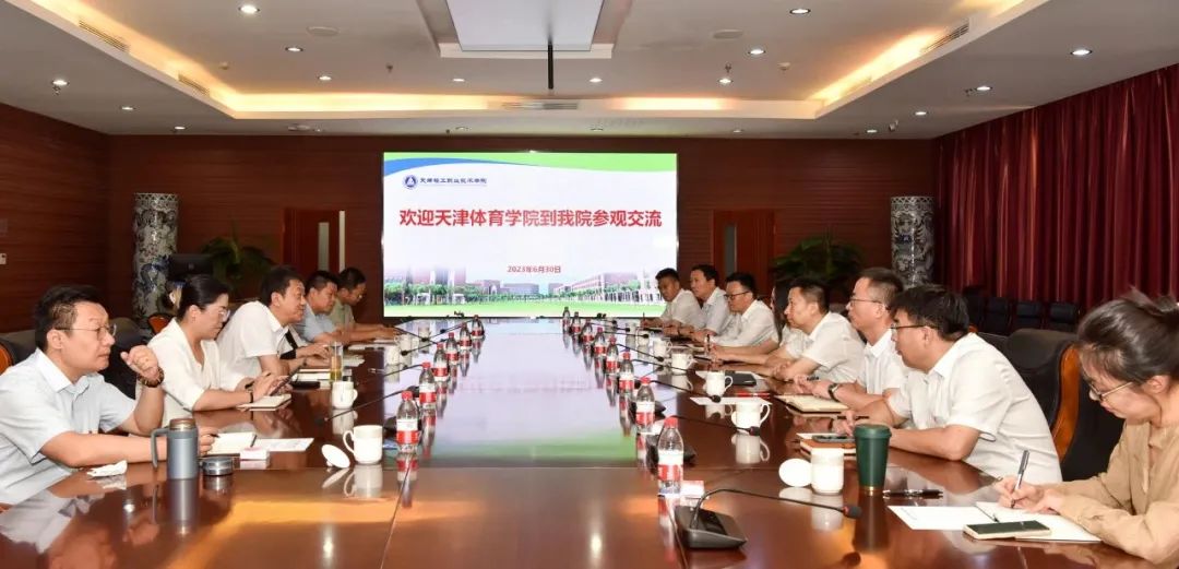 张欣介绍了我校办学特色和专业发展优势,并就体育类专业人才培养、国际学生武术文化体验、国家队科技攻关服务、校企合作研发、体育装备制造及体育工程学院建设等内容进行重点介绍。他指出,两校开展合作是深入贯彻落实习近平总书记关于教育的重要论述的生动体现,也是推动天津高等教育事业发展的共同任务。他希望两校能在鲁班工坊课程共建、国际学生联合培养、科技创新与服务等领域深入合作,打造一批具有天津特色的对外交流合作项目,积极推进职普融通、产教融合,共同推动教育科技人才“三位一体”融合发展,为服务好“一带一路”建设提供天津智慧。