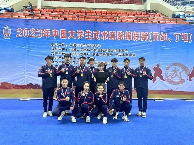 我校代表队由武术与民族传统体育学院2020级、2021级、2022级的11名学生组成,武术与民族传统体育学院副院长郝大伟、武术教研室教师王晓楠担任教练员。为取得赛事好成绩,自6月进入备战训练以来,参赛运动员和教练员战酷暑、斗高温,牺牲休息时间,全身心投入紧张有序的备战训练中。比赛中,我校代表队团结一致、顽强拼搏,经过紧张激烈的角逐,最终,任振豪获男子丁组形意拳第一名,张鸿皓、毛正润获男子丁组对练第一名,蒋壮壮获男子丙A组通臂拳第一名,孙剑获男子丙A组软器械第一名,王梦煜获女子丙A组通臂拳第一名;任振豪获男子丁组软器械第二名,王玉倩获女子丙A组象形拳第二名;邢少凡获男子丙A组太极拳第三名,韩本桢获男子丙A组华拳第三名。此外,崔祖豪获得男子丙A组单器械第六名、男子丙A组通臂拳第七名,蒋壮壮获男子丙A组双器械第八名,韩本桢获男子丙A组单器械第八名。