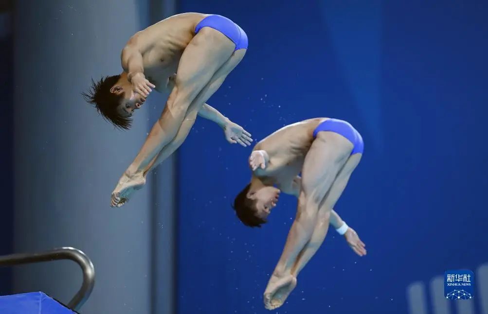 在男双十米台决赛中,我校学子杨凌、黄子淦携手亮相,凭借两人此前多年搭档代表天津队参赛积累的默契,他们在六轮动作中始终保持着头名排位,最终以总分461.22分摘金。