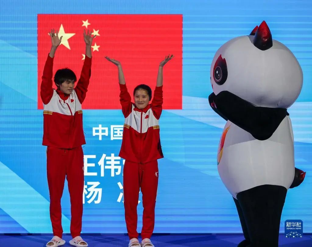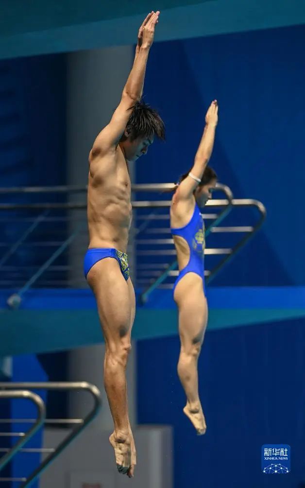我校学子杨凌搭档华南理工大学学生王伟莹,出战跳水混双三米板决赛,他们凭借默契的配合及超群的实力,在五轮比赛中一路领先,最终以总分328.20分轻松夺冠。