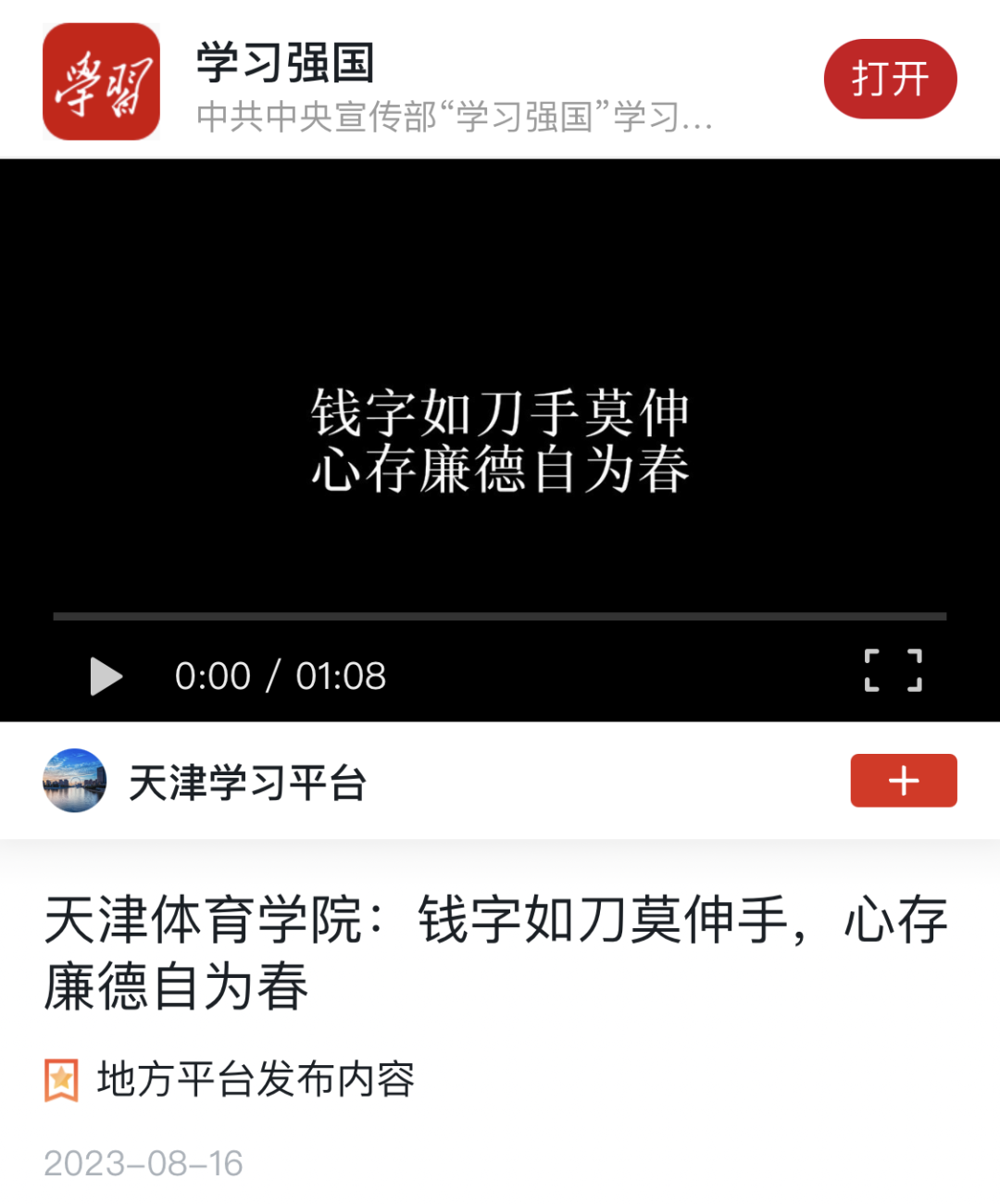 日前,“学习强国”天津学习平台刊播我校师生创作的廉洁文化微电影作品《钱字如刀莫伸手,心存廉德自为春》。本片以一个普通公职人员的职业生涯为主线,讲述了他从一开始不接受贿赂到最后因贪欲膨胀误入歧途的故事。影片以通俗易懂、富有感染力的形式揭示了腐败的危害和毒害,提供了一个耐人寻味的视觉盛宴,使观众对廉洁从政的必要性有了更深刻的理解。