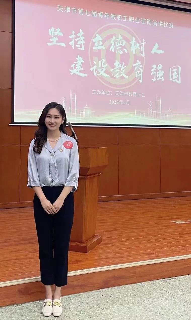 为深入学习贯彻习近平新时代中国特色社会主义思想和党的二十大精神,大力弘扬劳模精神、工匠精神,教育引导全市广大教职工涵养职业道德、建设教育强国,9月26日,天津市教育工会组织举办天津市第七届青年教职工职业道德演讲比赛,共有全市29所高校附院、16个区教育工会的44名选手参赛,我校教师李相宜代表学校参赛。经过全天九个小时的赛程,李相宜在激烈的角逐中以动人的讲述风格、精湛的演讲水平、出色的现场发挥斩获一等奖。