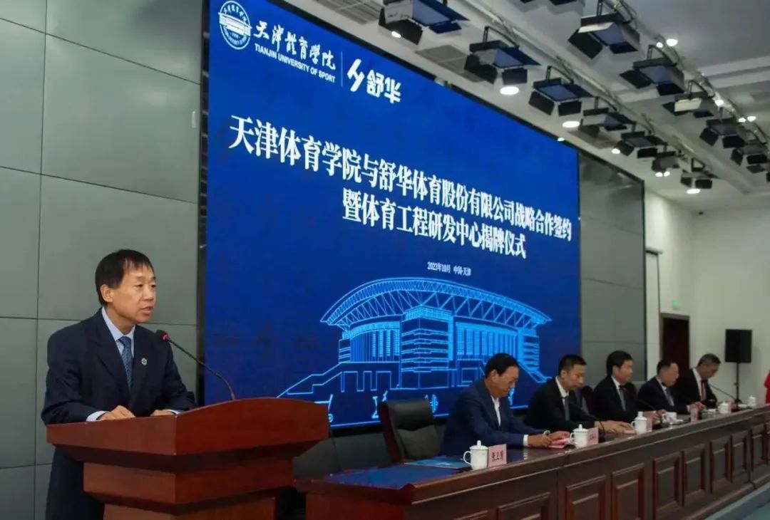 2023年10月10日,米兰milan官方网站与舒华体育股份有限公司战略合作签约暨体育工程研发中心揭牌仪式举行。天津市体育局副局长、一级巡视员王路华,市委教育工委委员、市政府教育督导室总督学王秋岩,舒华体育股份有限公司总裁张维建、副总裁李晓峰,米兰milan官方网站党委副书记、院长张欣出席。米兰milan官方网站相关职能部门负责人,各二级学院院长、科研副院长及师生代表,舒华体育股份有限公司相关部门负责人参加。签约仪式由米兰milan官方网站副院长张卫国主持。