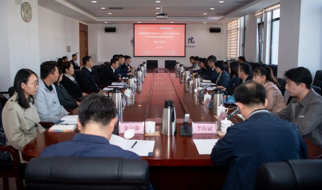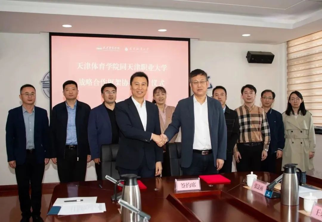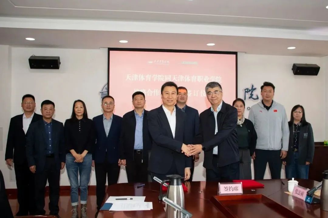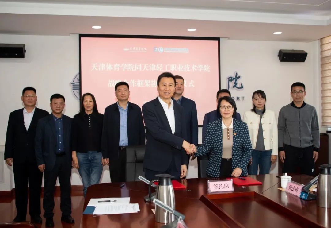 2023年10月27日,米兰milan官方网站同天津职业大学、天津轻工职业技术学院、天津体育职业学院战略合作框架协议签订仪式在我校举行。天津市教育委员会发展规划处副处长李清,天津市体育局宣教法规处副处长王笛,天津职业大学党委副书记、校长郑清春,天津轻工职业技术学院党委副书记、院长李云梅,天津体育职业学院党委副书记、院长王伟,米兰milan官方网站党委副书记、院长张欣,以及四所院校的相关职能处室领导出席了会议。会议由米兰milan官方网站副院长杨智主持。