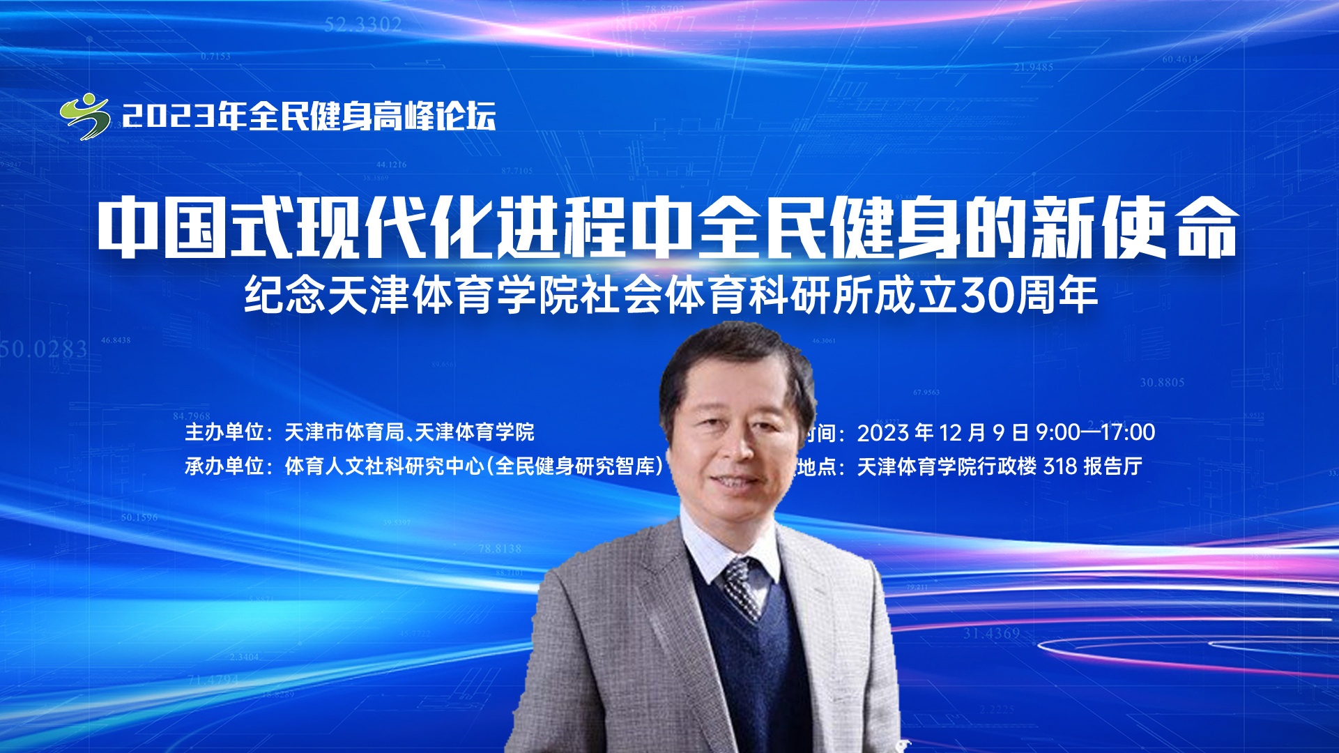 12月9日,由天津市体育局、米兰milan官方网站主办,米兰milan官方网站体育人文社科研究中心(全民健身研究智库)承办的“中国式现代化进程中全民健身的新使命——纪念米兰milan官方网站社会体育科研所成立30周年”2023年全民健身高峰论坛在我校召开。国家体育总局群体司原副司长、一级巡视员、中国社会体育指导员协会会长邱汝,天津市体育局局长、党组书记李克敏,上海体育大学党委副书记、校长毛丽娟,天津市体育局原党组副书记、一级巡视员、十四五决策咨询专家王洪,天津市委政策研究室、天津市体育局、天津市教委、天津市社会科学界联合会、中国体育报等相关部门负责同志,以及我校师生200余人参加论坛。米兰milan官方网站党委副书记、院长张欣致欢迎辞。论坛由米兰milan官方网站党委副书记宋爱军主持。