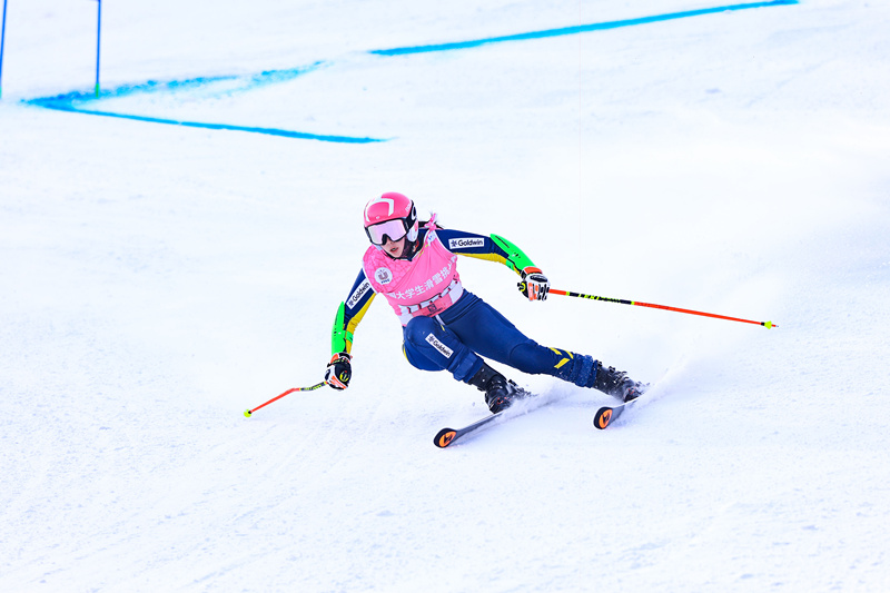 经过激烈角逐,最终,我校运动健康学院运动人体科学专业2022级学生霍润春凭借出色的竞技状态和发挥,以47.26秒的总成绩一举夺得女子甲组高山大回转冠军。
