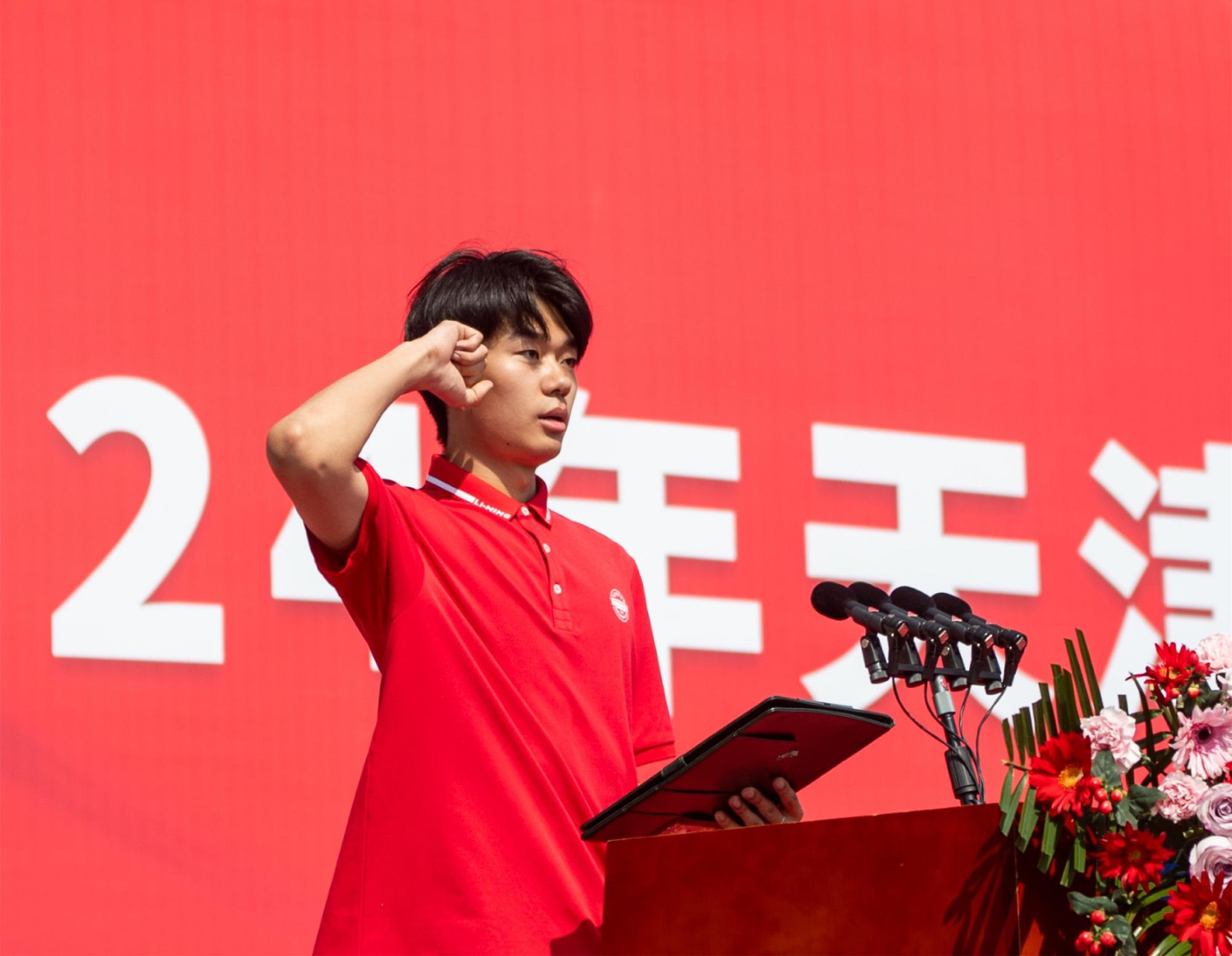 张欣在致辞中谈到,今年年初,习近平总书记视察天津并对新征程上天津工作作出了“四个善作善成”重要要求,为“全面建设社会主义现代化大都市,奋力谱写中国式现代化天津篇章”提供了根本遵循。天津体育事业、教育事业的发展迎来了关键之年,关键之年当有关键之为!他回顾了近一年来,我校事业发展取得的成绩:我校师生在第31届世界大学生夏季运动会、第19届亚运会上摘金夺银,体育学学科成功获批博士后科研流动站,“天津市体卫融合与健康促进重点实验室”列入天津市重点实验室筹建名单,与中国体育舞蹈联合会、国家体育总局小球运动管理中心共建中国体育舞蹈学院、中国国家霹雳舞队集训基地和中国板球学院。他希望广大师生以本次运动会为契机,将米兰人的创新进取、拼搏奋斗之姿绘入教育强国、体育强国、健康中国建设的宏伟蓝图中,以优异成绩献礼中华人民共和国成立75周年!