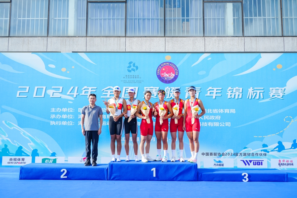 7月17日至21日,2024年全国赛艇青年锦标赛在湖北武汉红莲湖畔激情开桨。全国24支代表队、共计771人参加本次赛事。我校赛艇队由校党委书记张立顺任领队,竞技运动学院副院长聂军良带队参赛,经过运动员们奋勇拼搏,我校赛艇队取得五金五银一铜的优异成绩。