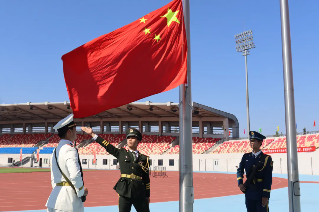 雄壮的国歌伴随着灿烂阳光,为开学典礼拉开了序幕。