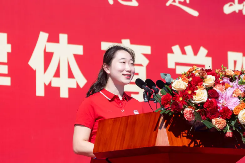 体育经济与管理学院陈洪教授作为教师代表发言,鼓励新生以中华体育精神为指引,脚踏实地学本领,刻苦训练长才干,敬业乐群,博习亲师,论学取友,争做有理想、敢担当、能吃苦、肯奋斗的新时代体育好青年。