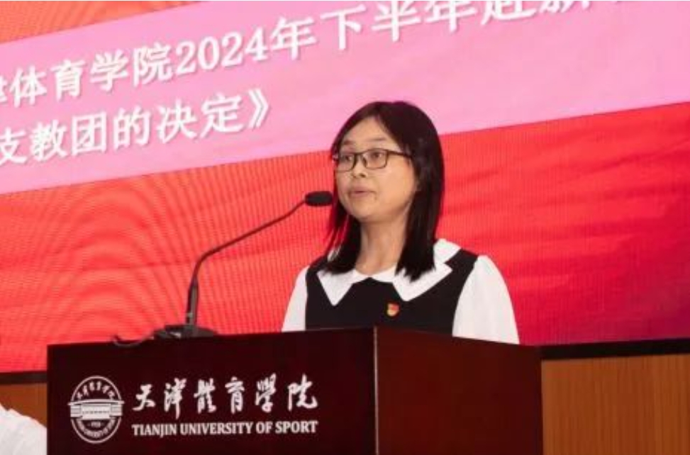 社会体育学院党总支书记张楠宣读《关于成立社会体育学院2024年下半年赴新疆实习支教团临时党支部的决定》。