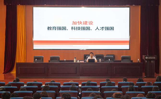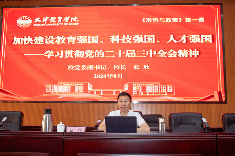 9月23日,党委副书记、院长张欣为我校本科生代表讲授形势与政策第一课,宣讲党的二十届三中全会精神,全面阐释教育、科技、人才在全面建设社会主义现代化国家中的地位作用和相互关系,教育引导大学生深刻认识新时代加快建设教育强国、科技强国、人才强国的历史使命。