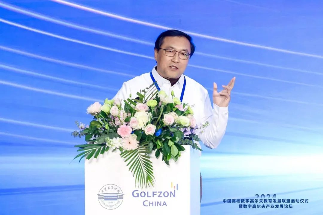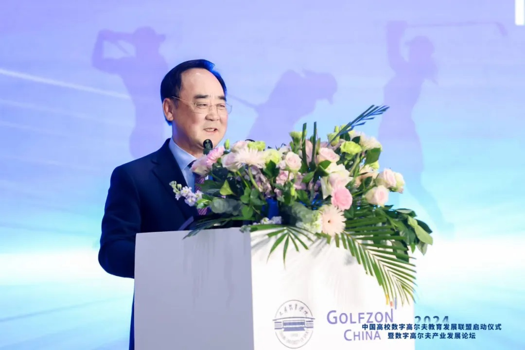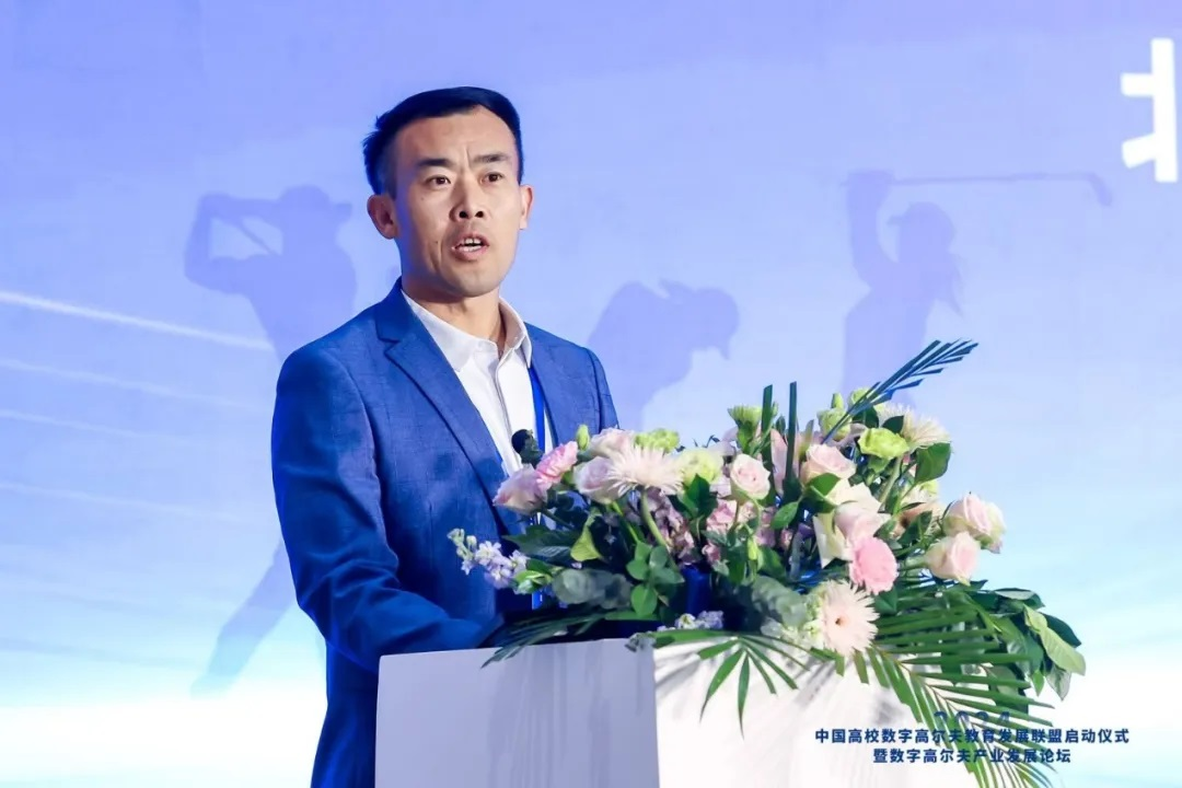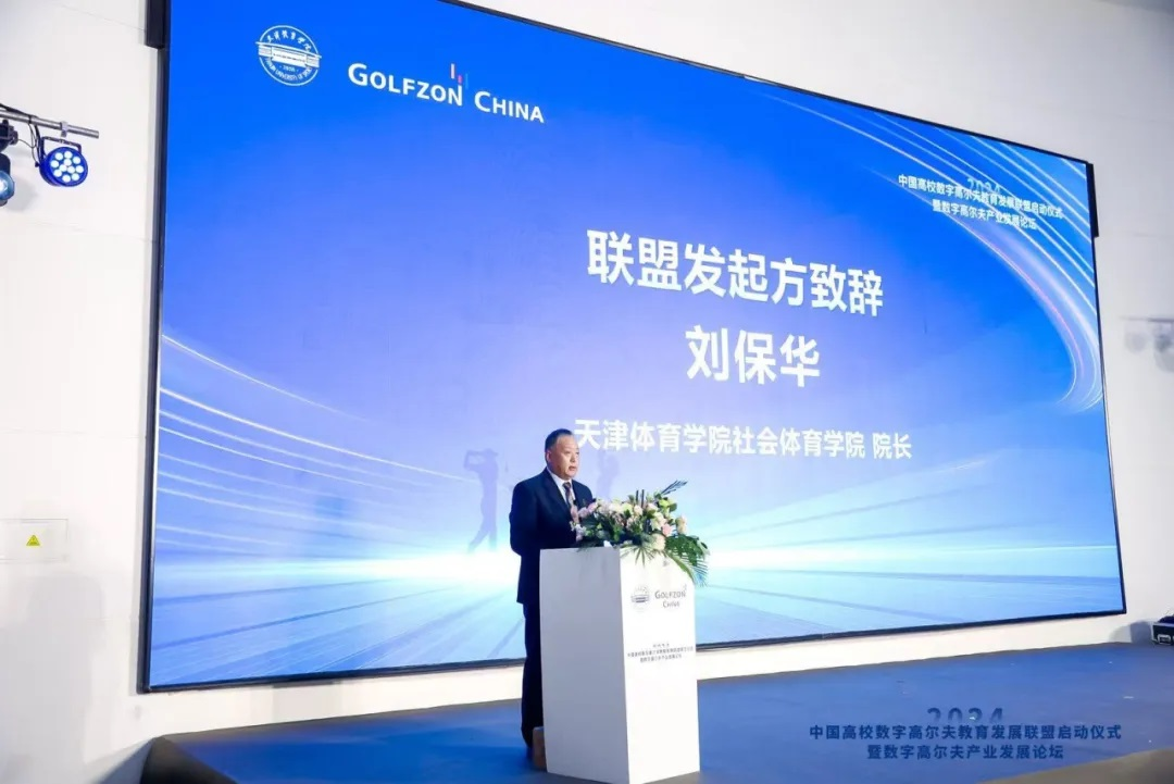 在随后举行的中国高校数字高尔夫教育发展联盟启动仪式上,我校社会体育学院院长刘保华代表联盟发起方致辞。他介绍了联盟的宗旨和目标。联盟将致力于促进院校之间的学科交流、加强校企之间的资源合作,推动数字高尔夫产学研一体化发展。
