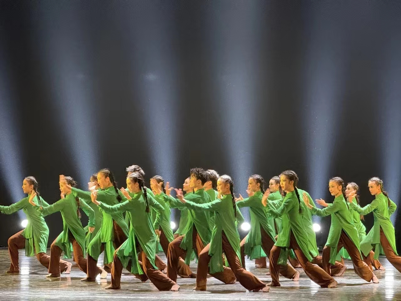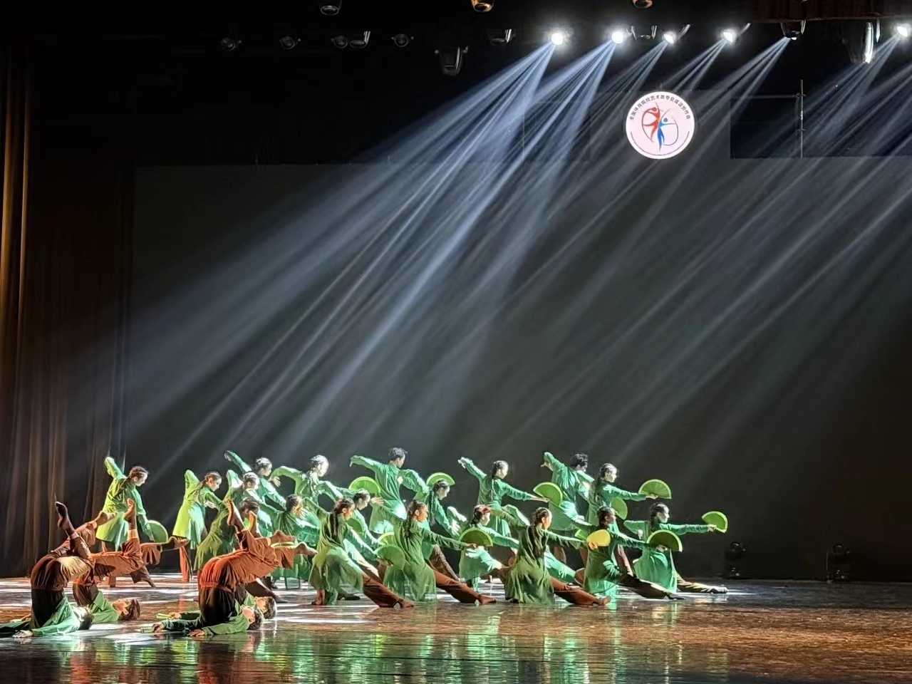 在本届体育艺术节上,我校传媒与艺术学院(国际教育学院)副院长刘锦瑶担任领队,吴崟、窦荳、孙志远作为指导教师带领24名大学生参加展演。我校舞蹈作品《松》,以“建安七子”刘桢的诗句“亭亭山上松,瑟瑟谷中风。风声一何盛,松枝一何劲!”为创作灵感,借青松之刚劲、明志向之坚贞,始太极之有形、归动静于无形,融合舞蹈、太极语汇,刻画出“松”岁寒不凋、坚毅高洁的品格。该作品立意深邃,我校大学生的表演刚柔并济、气韵合一,赢得了专家和各参赛院校的一致好评,最终斩获中国舞项目金奖。