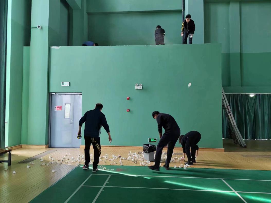 3月9日中午,竞技运动学院党总支师生党员来到乒羽馆,摆放乒乓球、羽毛球6个馆内的休息座椅,并粘贴标志,清理高台顶部的羽毛球。师生党员以实际行动践行雷锋精神,弘扬奉献、友爱、互助、进步的志愿服务精神。