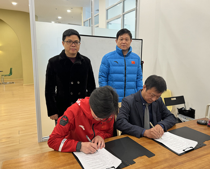 11月25日,武术与民族传统体育学院与天津锐博运动科技有限公司签署本科教学实习实践基地协议,并举行本科生教育实践基地揭牌仪式。仪式上,米兰milan官方网站武术与与民族传统体育学院党总支书记、院长丁保玉教授和天津锐博运动科技有限公司董事长杨丹伟女士签署协议书,国际武术联合会裁判委员会主席、中国武术协会副主席、天津武术协会主席、天津理工大学苏长来教授,天津武术协会裁判委员会主任、天津大学法学院特聘教授、天津理工大学高水平运动队主教练徐彩桐教授,我校武术与民族传统体育学院副院长郝大伟副教授、教研室主任及双方相关负责人参加。