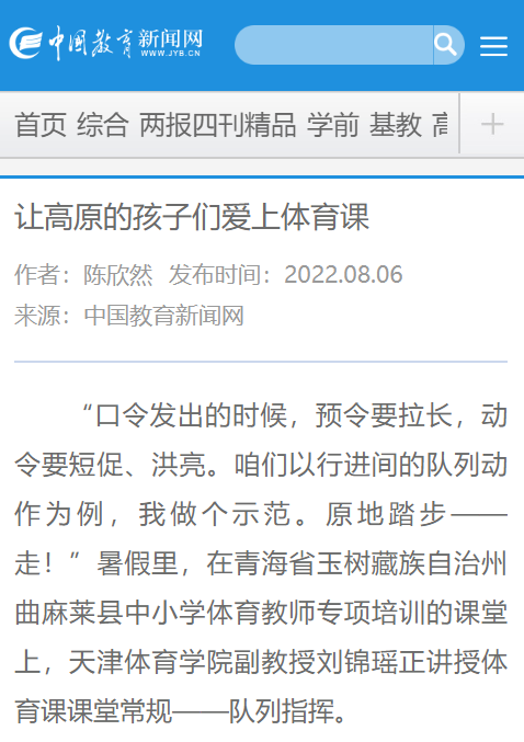 日前,我校教师赴青海省玉树藏族自治州曲麻莱县,为当地中小学体育教师开展专项培训。包括人民网、中国教育新闻网、天津日报新媒体、北方网、津云、天津教育报新媒体等在内的中央和我市多家媒体,对此进行了报道。