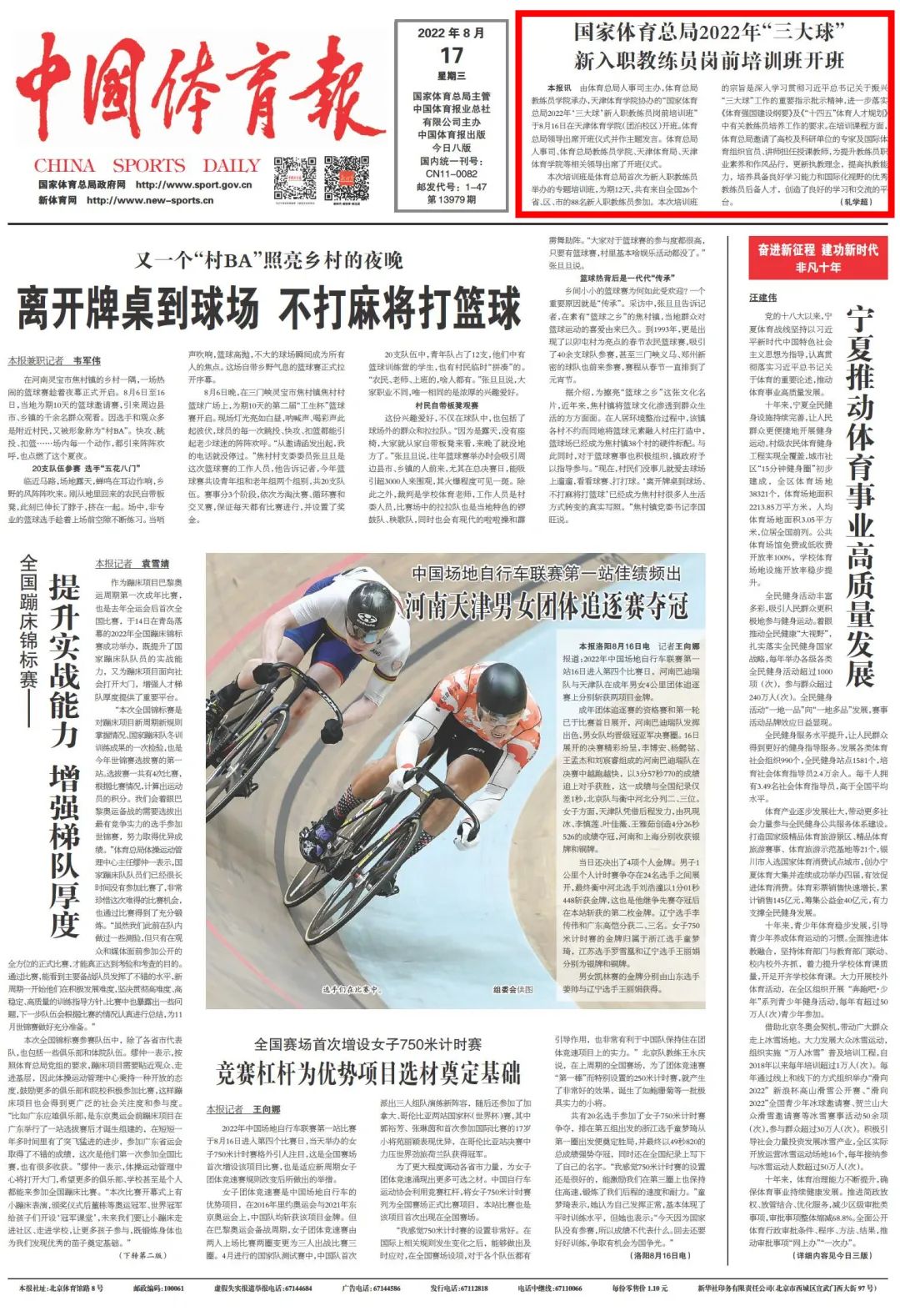 2022年8月17日,《中国体育报》头版报道国家体育总局2022年“三大球”新入职教练员岗前培训班在我校开班。现全文转载。