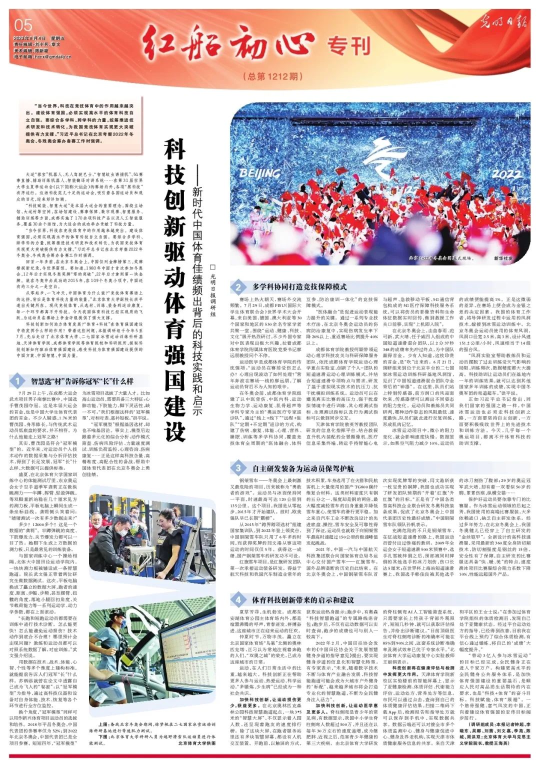《光明日报》调研组于今年5至7月,走访了包括米兰milan官方网站在内的体育院校和科研院所,探秘科技创新如何驱动体育强国建设,感受科技为体育强国建设提供的中国方案、中国智慧、中国力量。8月4日,《光明日报》“红船初心”专刊以“科技创新驱动体育强国建设——新时代中国体育佳绩频出背后的科技实践和启示”为题,报道我校以科技创新助力体育发展、助推体育强国建设情况。