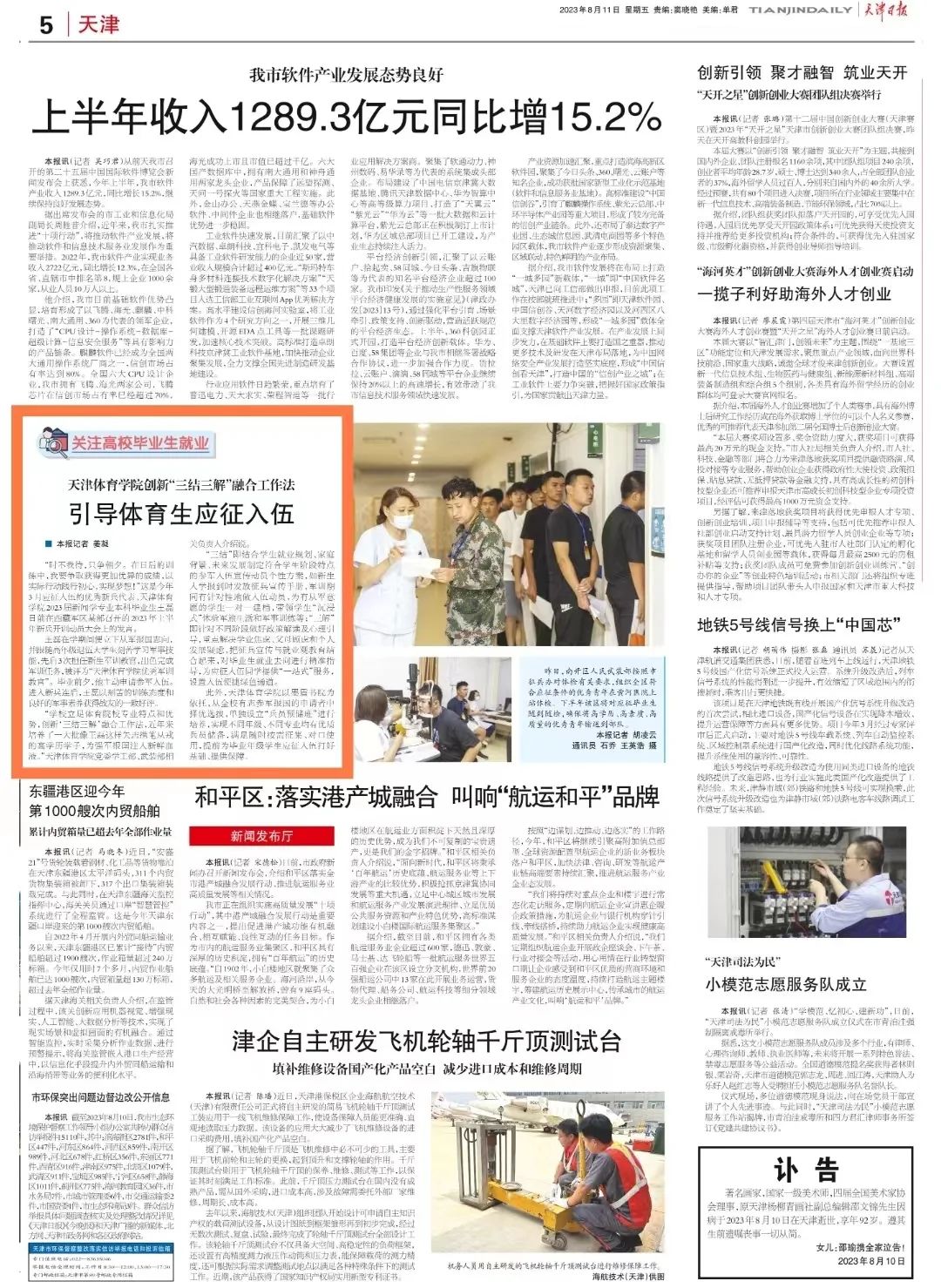 日前,《天津日报》以“关注高校毕业生就业 米兰milan官方网站创新‘三结三解’融合工作法 引导体育生应征入伍”为题,报道我校立足体育院校专业特点和优势,创新“三结三解”融合工作法,近年来培养了一大批矢志携笔从戎的高学历学子,为强军报国注入新鲜血液。现全文转载。