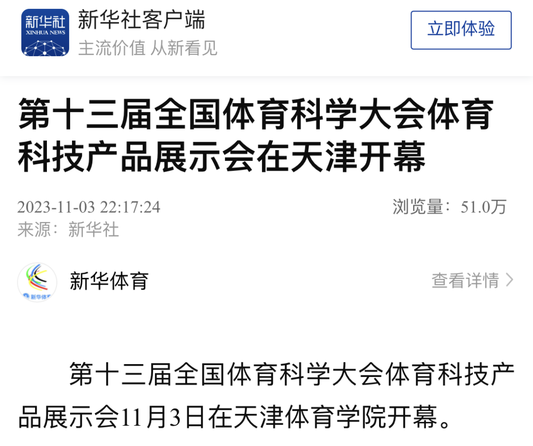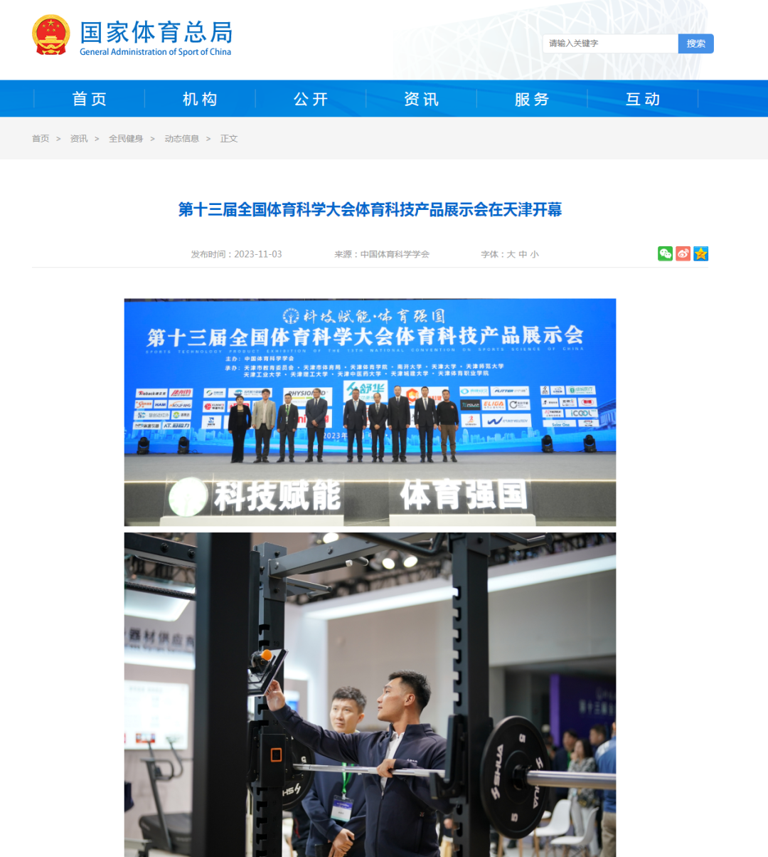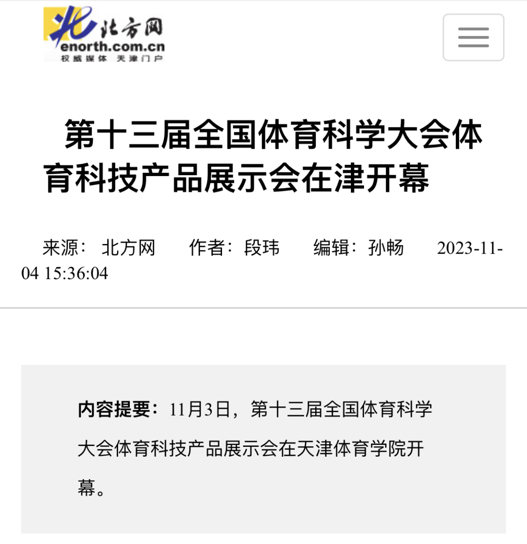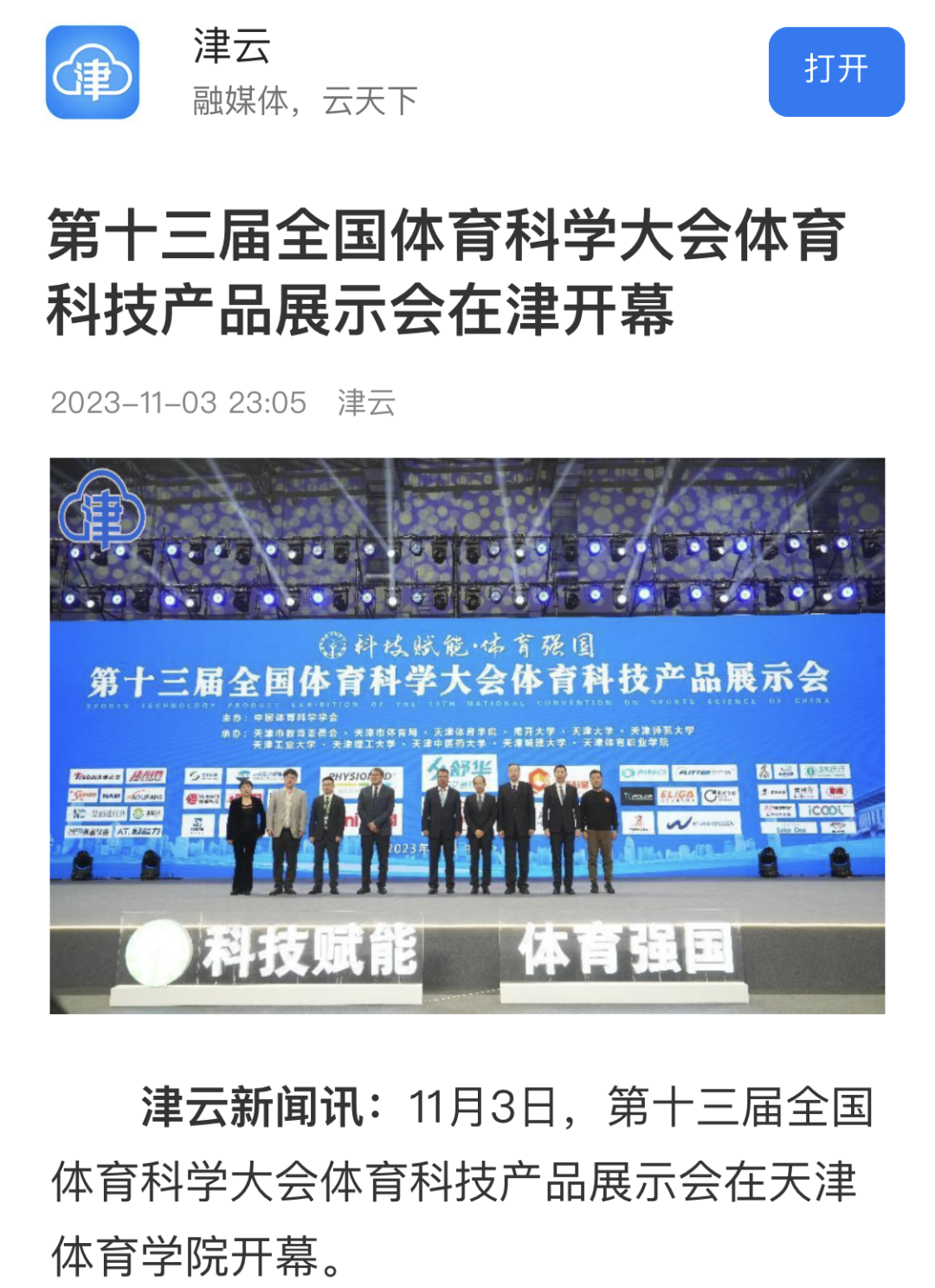 2023年11月3日下午,第十三届全国体育科学大会体育科技产品展示会在米兰milan官方网站隆重开幕。新华社、央广网、国家体育总局官网、津云、北方网等中央和我市多家媒体对此进行了报道。