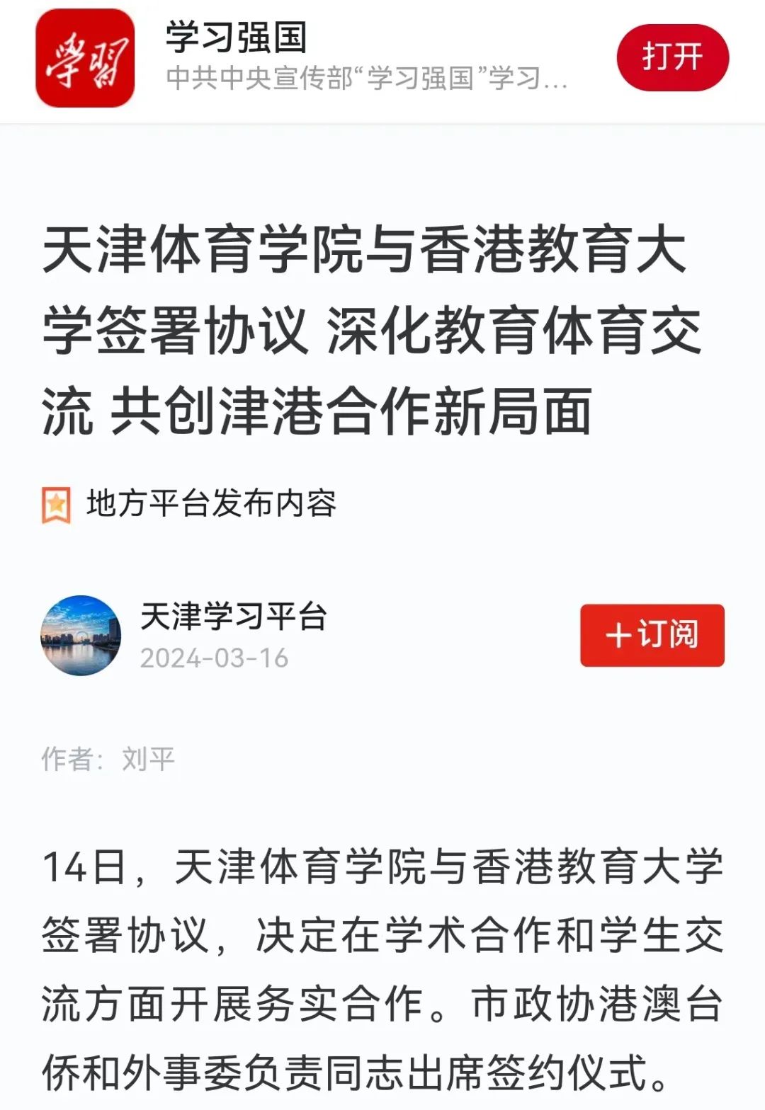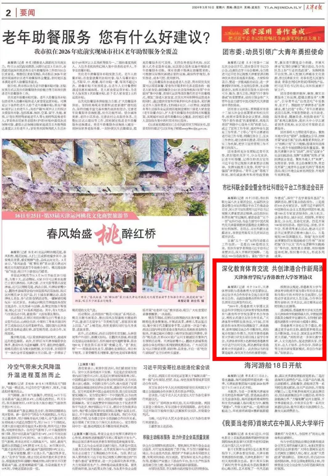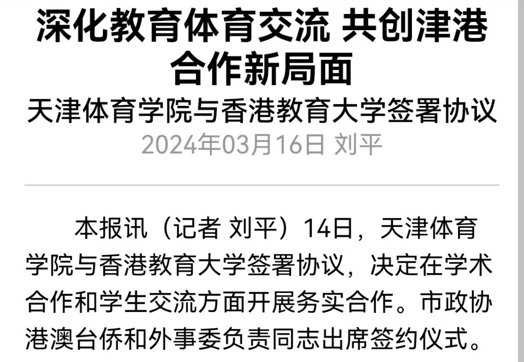 为进一步深化对外合作交流,助力津港两地教育高质量发展,2024年3月14日,米兰milan官方网站与香港教育大学学术合作及学生交流项目协议书签约仪式在米兰milan官方网站举行。学习强国、《天津日报》、津云等多家媒体对此进行了报道。
