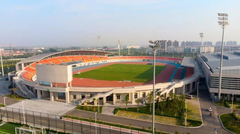 田径场建筑面积7958平方米,田径场为半圆式400米标准跑道,跑道外的场地设跳高、撑杆跳高、跳远、三级跳远场地,以及各投掷项目场地,附属设施包括:运动员休息室、裁判员休息室、兴奋剂检查站、贵宾室、新闻发布厅等,配备有大屏幕,具备IT网络和电视转播条件,可承接田径比赛及各种大型活动。