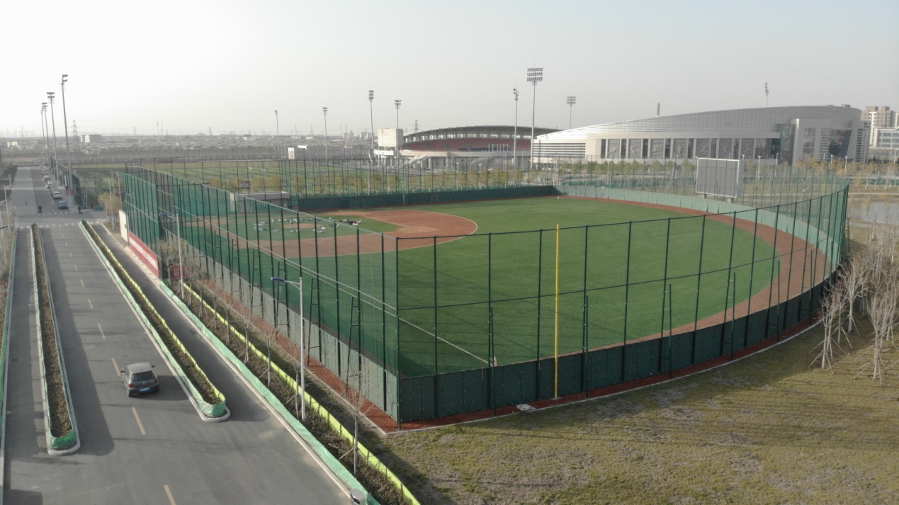 8925平方米,铺设人造草皮,有专门训练发球的场地,场地四周架设金属档网,修建排水暗沟等配套设施。目前主要用于教学、训练,